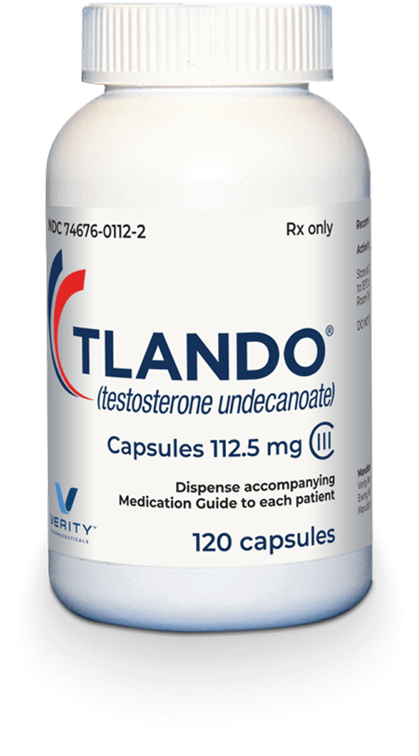 †Eligibility restrictions: Must be 18 years of age or older with a valid prescription for TLANDO® (testosterone undecanoate). Must be a U.S. resident with a valid U.S. shipping address. Additional shipping charges may apply. Offer not valid for prescriptions reimbursed under any private insurance or any federal or state healthcare program, including, but not limited to, Medicare, Medicaid, Tricare, or any state medical assistance programs. Purchases made under this program cannot be claimed in any Part D True Out of Pocket Cost (TrOOP) Submission. Patients are responsible for reporting use of this program to any private insurer, health plan or third-party payer. The TLANDO Preferred Pharmacy Network cash program is not health insurance. Cannot be combined with other offers or programs. Offer void where prohibited by law, taxed, or restricted. Verity Pharma reserves the right to rescind, revoke, or amend this offer at any time without notice. By enrolling in this program, you demonstrate that you understand and agree to comply with the terms and conditions set forth herein and any additional Terms and Conditions set forth by the specialty pharmacies that are part of the TLANDO Preferred Pharmacy Network regarding purchases made under this program.